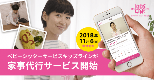 株式会社キッズラインのプレスリリース(2018年11月6日 12時03分)スマホで呼べる1時間1000円(手数料別)から...