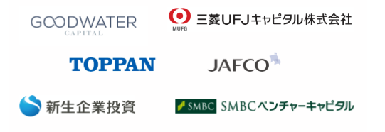 Goodwater Capital、JAFCO、三井住友銀行、SMBCベンチャーキャピタル、三菱UFJキャピタル、みずほキャピタル、SBI Investment、新生企業投資、伊藤忠商事、電通イノベーションパートナーズ、凸版印刷、等