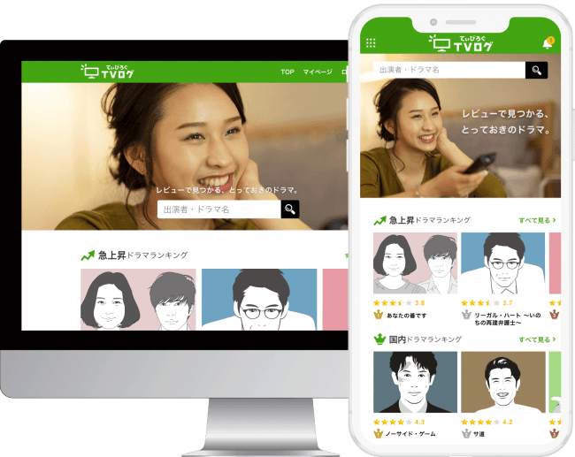 TVログ(てぃびろぐ)とは、 ユーザーの口コミで作る独自の公平な評価をもとに、ドラマのランキングや世間で話題になっているドラマがひと目でわかるサイトです。